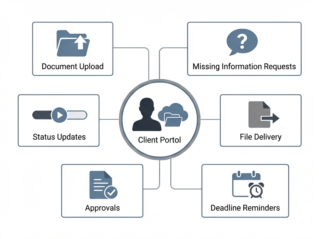 A client portal sounds simple until a firm starts listing everything it might want: file uploads, task tracking, e-signatures, billing, reminders, approvals, tax-season requests, and internal notes. Very quickly, the portal becomes a large software project instead of a practical business tool.